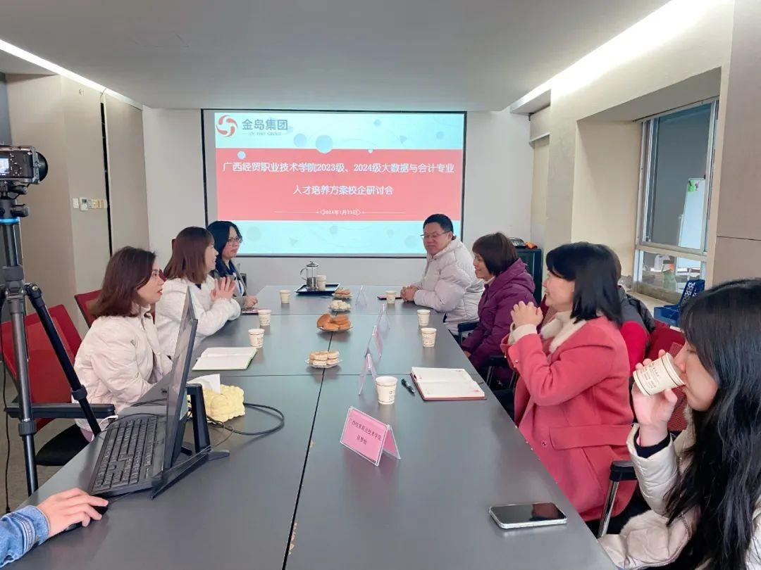 金岛商务同筑梦,育人为本启新天。广西金岛商务集团与广西经贸职业技术学院于2024年1月23日上午,在金岛商务集团的多功能会议室展开了一场别开生面的交流会。广西金岛商务销售战队徐总监、项目中心记账部陈总监以及金岛商务集团人力资源部张经理齐聚一堂,以饱满的热情迎接广西经贸职业技术学院代表团的到来。